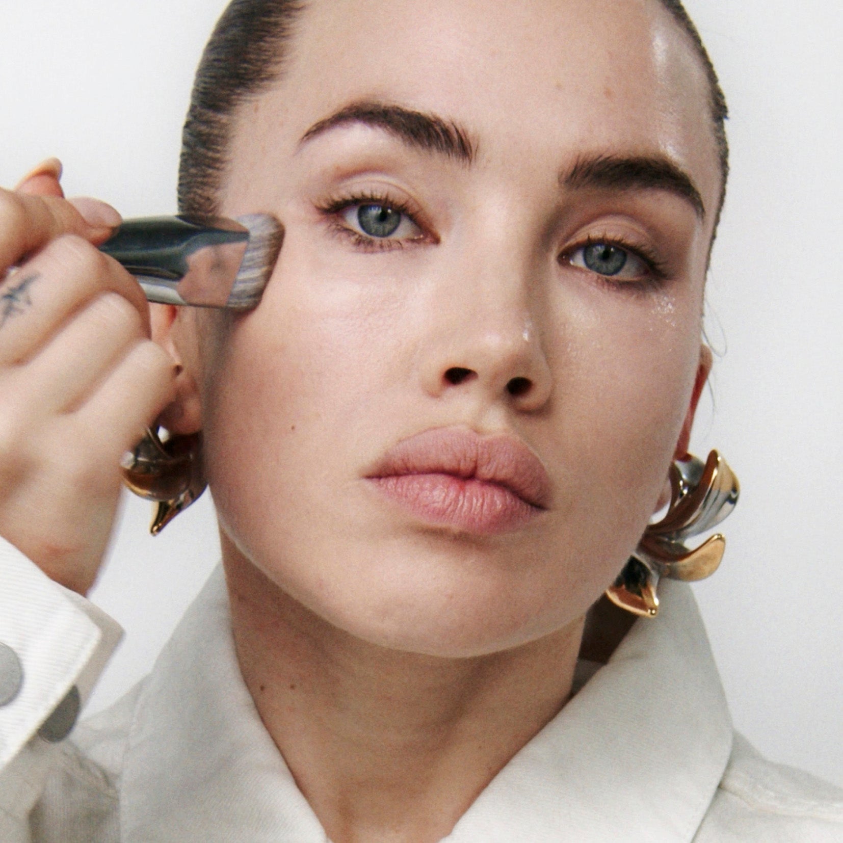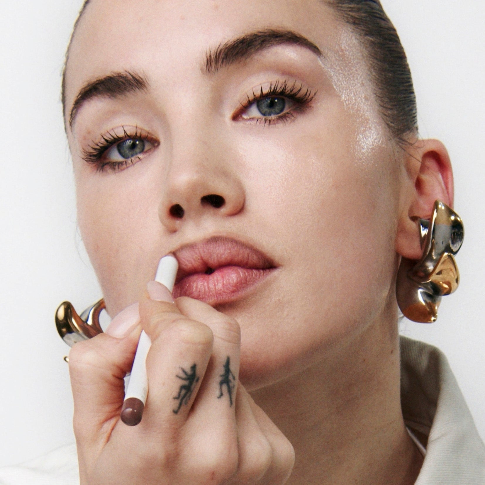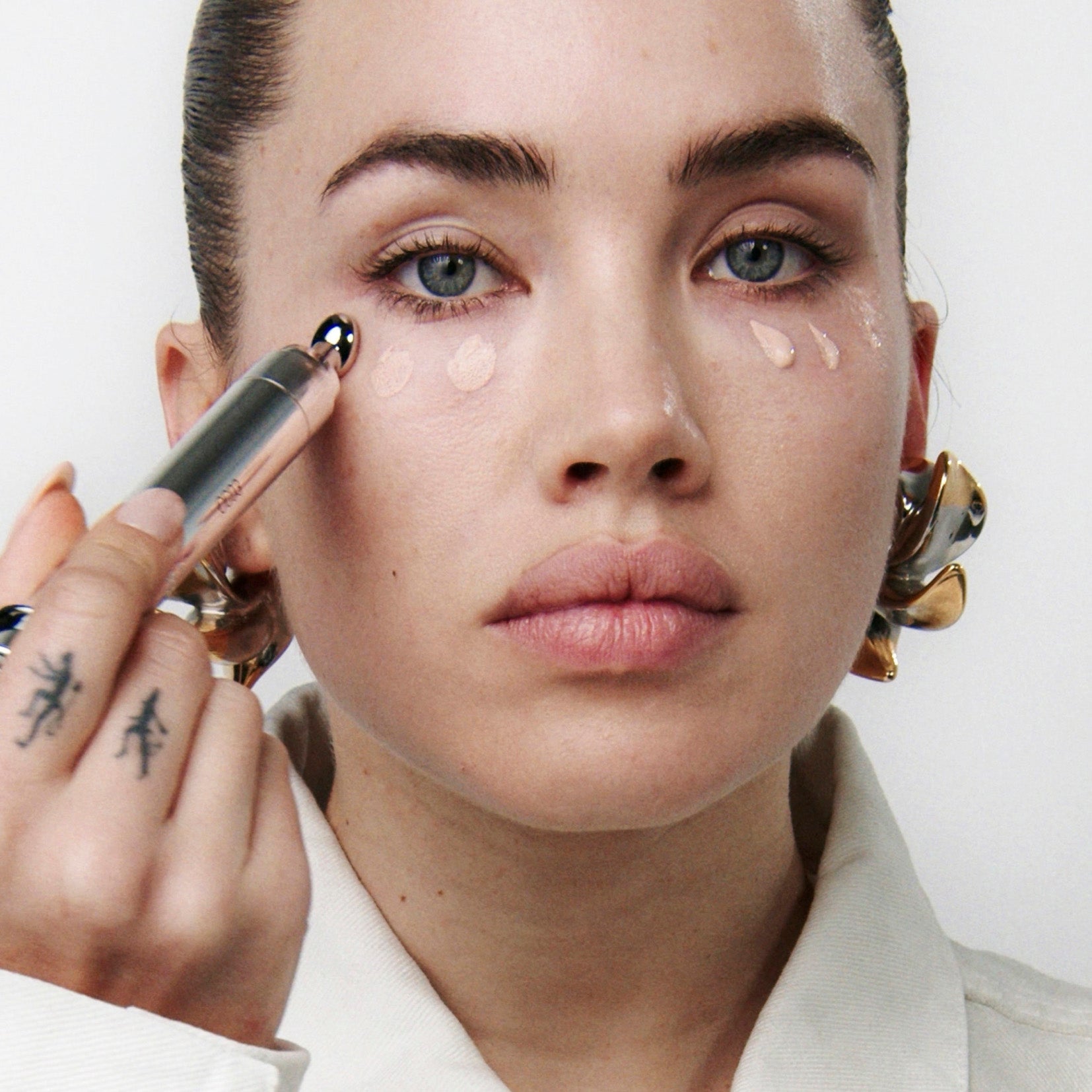 Dab 5 POINT LIFT in the 5 key areas for a sculpted effect: forehead, under eyes, on nose, and cupid's bow.